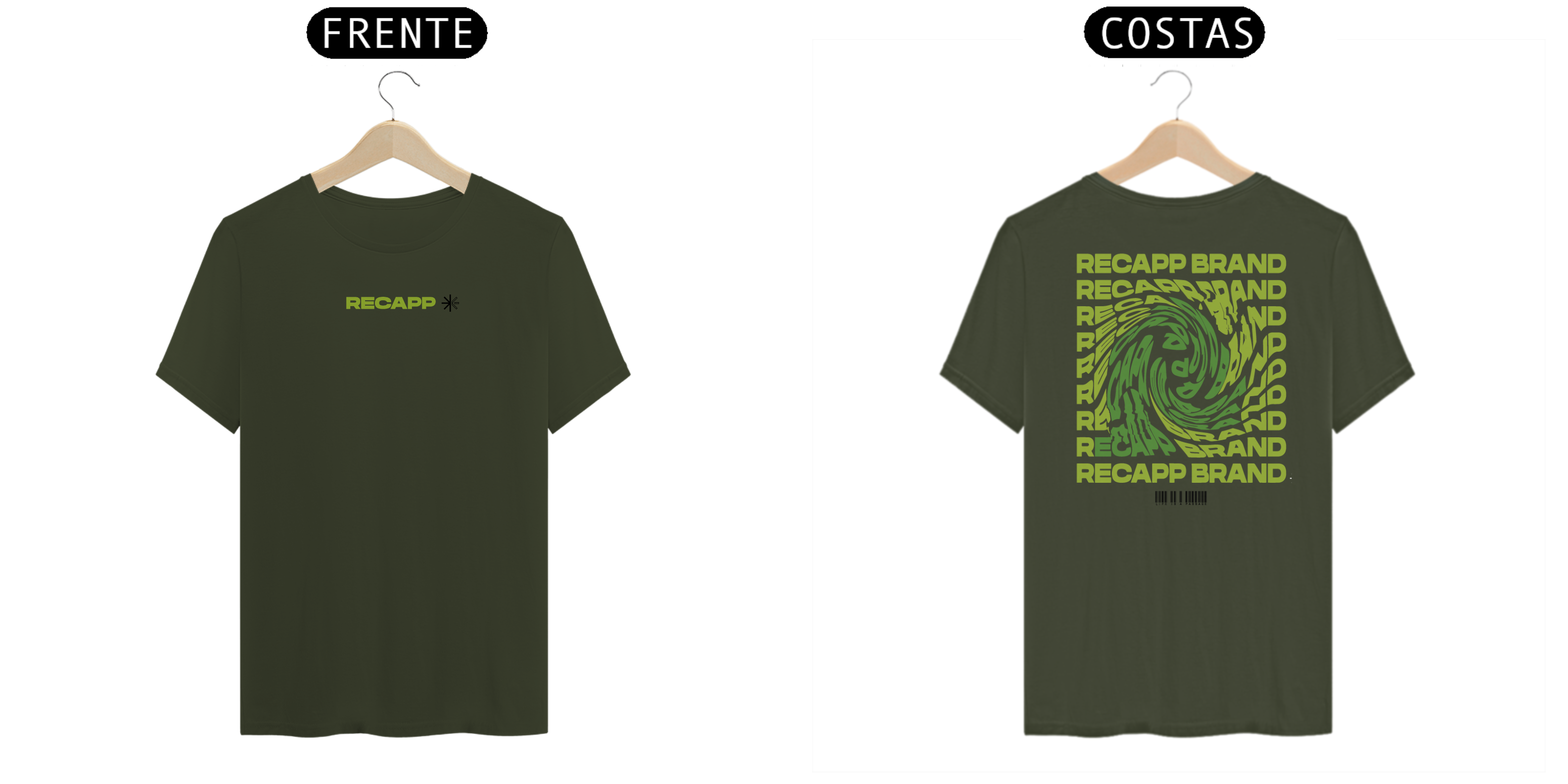 Recapp Brand: Uma peça indispensável para quem busca estilo e autenticidade. A camisa Recapp Brand apresenta um design minimalista na parte frontal, com o logotipo em verde vibrante. Nas costas, um grafismo ousado com padrão em espiral e a assinatura “Recapp Brand” cria um visual urbano e moderno. Feita em tecido de alta qualidade, garante conforto e durabilidade. Perfeita para compor looks casuais e expressar sua atitude.