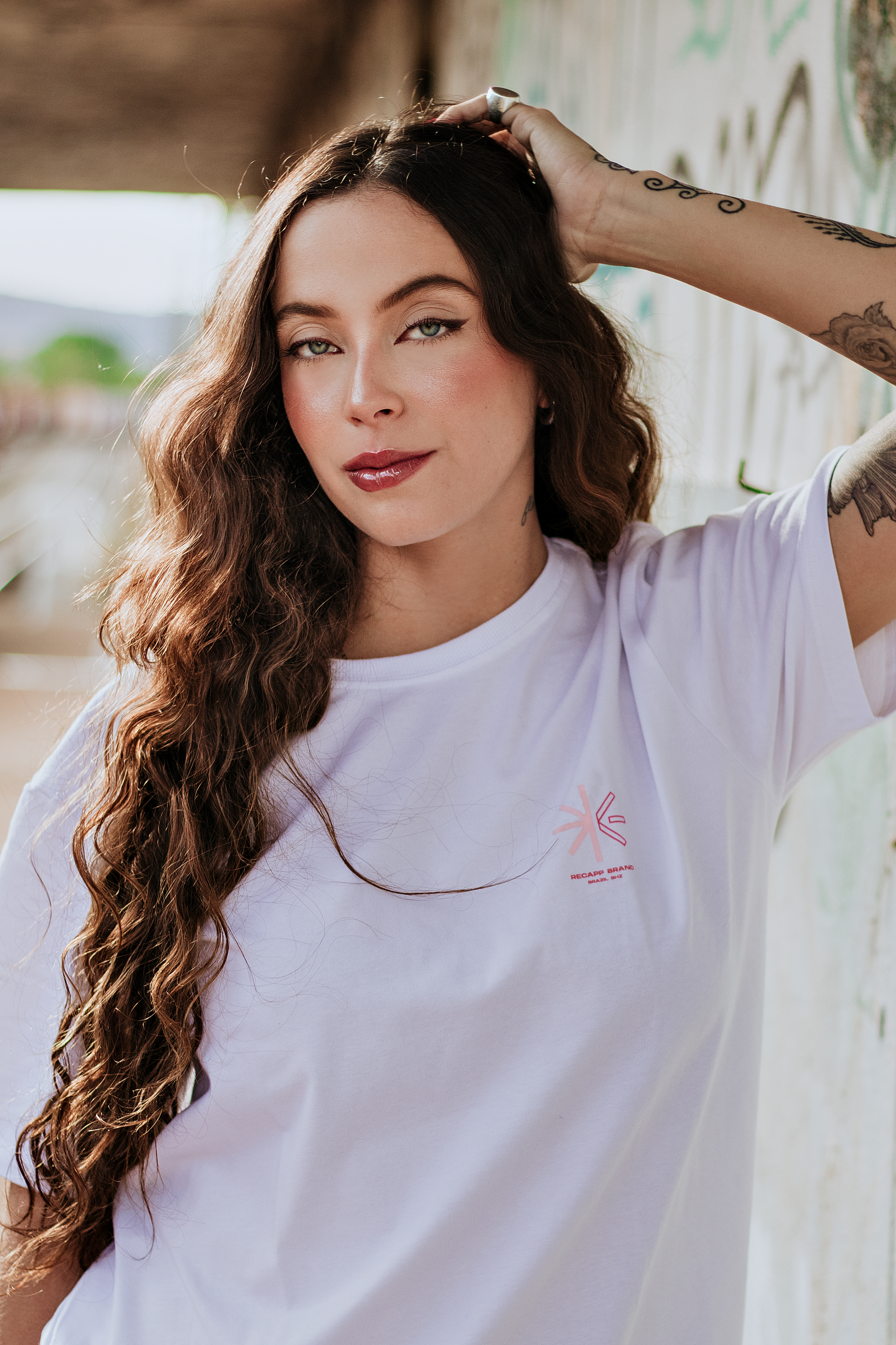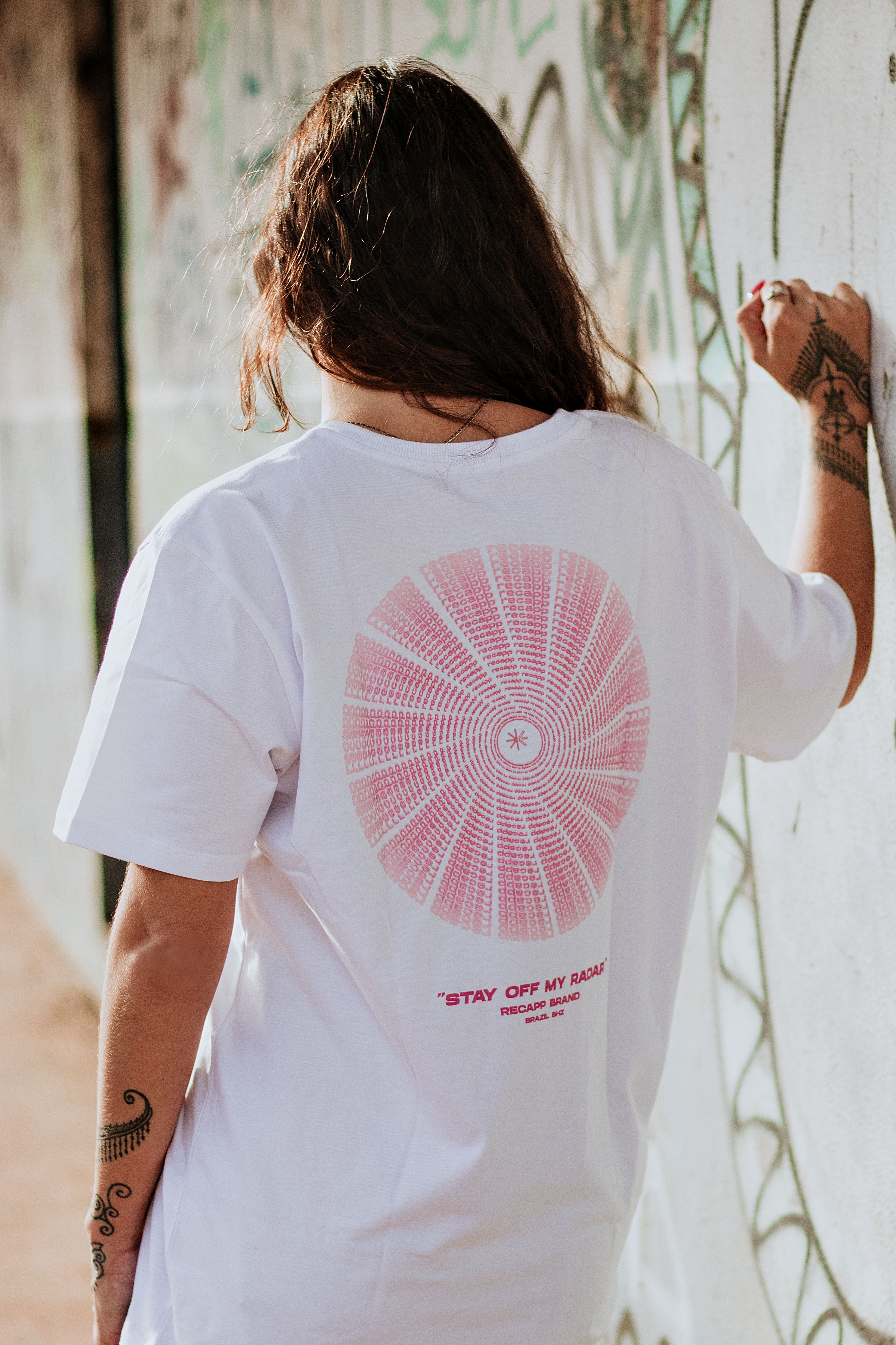 Recapp Mandala: Com um design minimalista e detalhado, a camiseta Recapp Mandala une conforto e estilo. Na frente, um pequeno símbolo em rosa adiciona elegância, enquanto nas costas, a mandala em destaque traz uma estética única, acompanhada da frase “Stay Off My Radar”. Ideal para quem busca um visual casual e moderno, essa peça é feita com materiais de alta qualidade, garantindo conforto em qualquer ocasião.