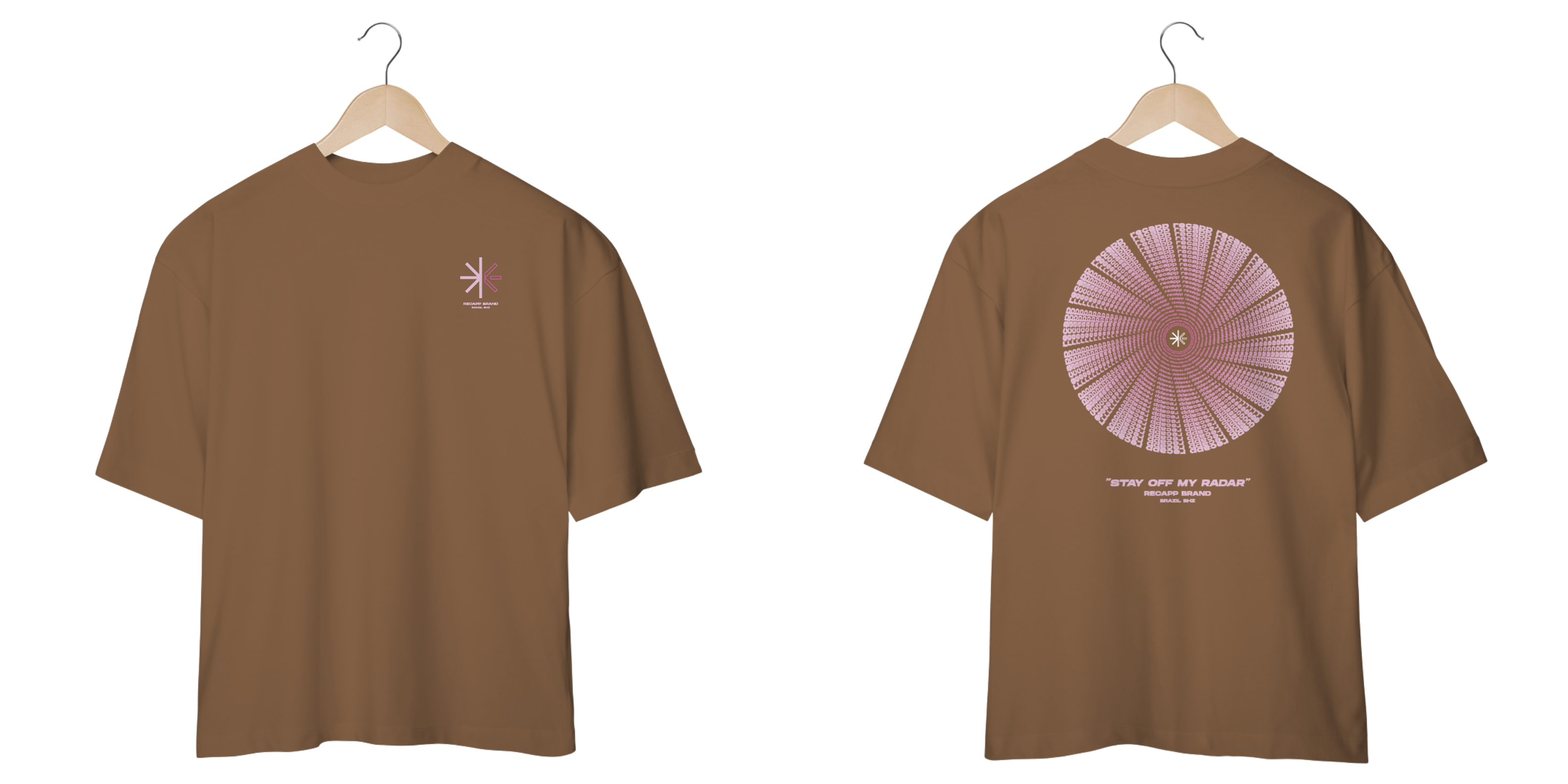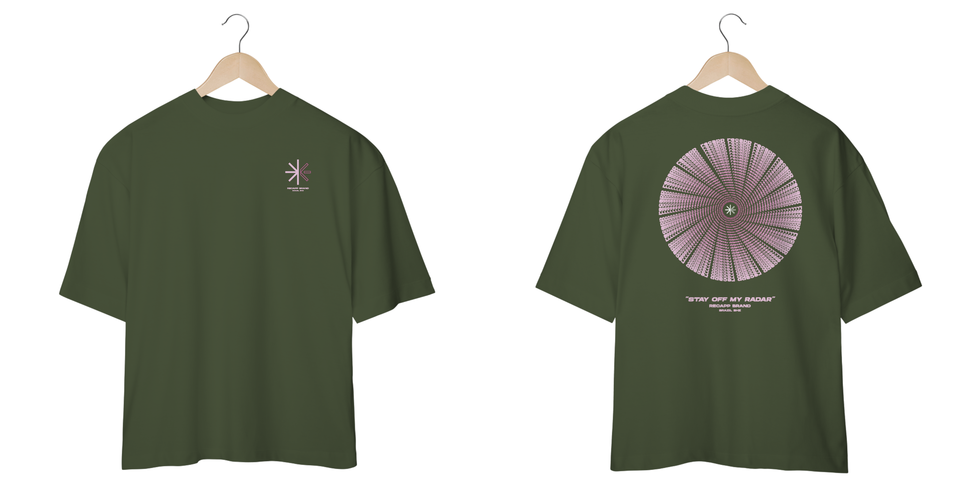 Recapp Mandala: Com um design minimalista e detalhado, a oversized Recapp Mandala une conforto e estilo. Na frente, um pequeno símbolo em rosa adiciona elegância, enquanto nas costas, a mandala em destaque traz uma estética única, acompanhada da frase “Stay Off My Radar”. Ideal para quem busca um visual casual e moderno, essa peça é feita com materiais de alta qualidade, garantindo conforto em qualquer ocasião.